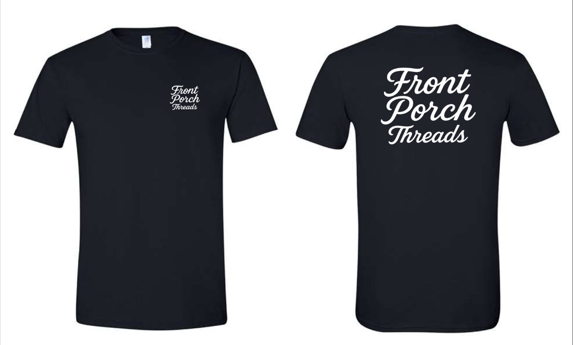 Keep it simple and timeless with the Front Porch Threads Classic Script Tee. Featuring a clean chest print and bold back script, this shirt is perfect for everyday wear. Soft cotton with a standard fit makes it a go-to for porch hangs, cookouts, and casual nights out.