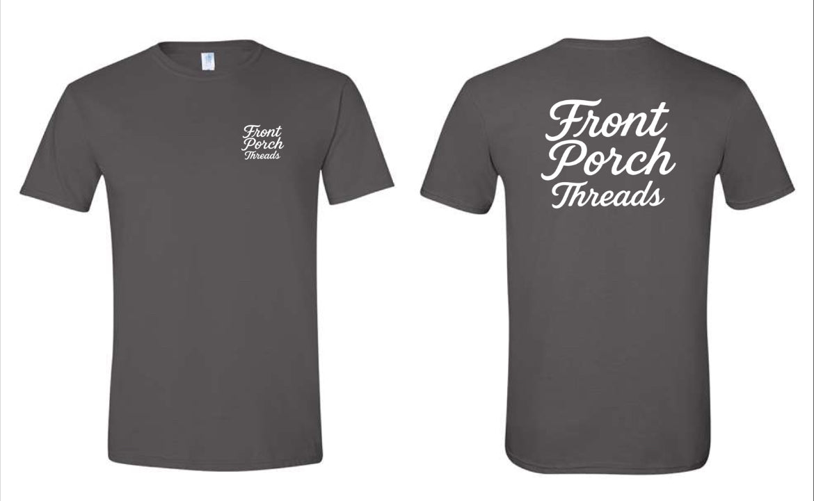 For a neutral look with the same timeless vibe, the Gray Classic Script Tee is your porch-ready essential. With “Front Porch Threads” printed small on the front and large on the back, this shirt balances low-key style with bold branding.
